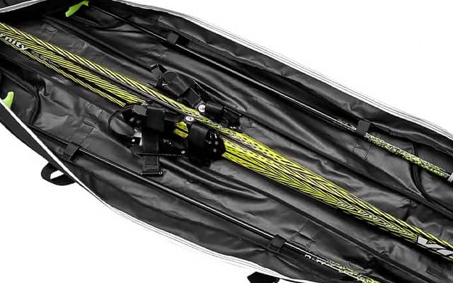Sunt foarte mulțumit de geantă. Există suficient spațiu în interior pentru a încăpea mult mai mult decât doar schiuri – ar trebui să poată acomoda cu ușurință tot felul de alte echipamente de schi împreună cu ele. Materialul impermeabil este un mare avantaj, dar am găsit bretelele puțin incomode pentru transporturi îndelungate.