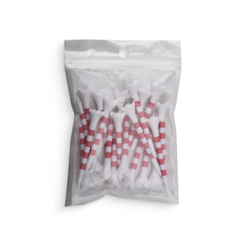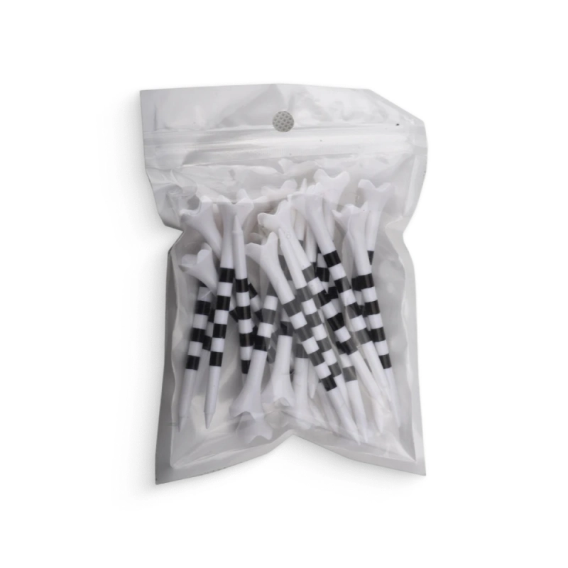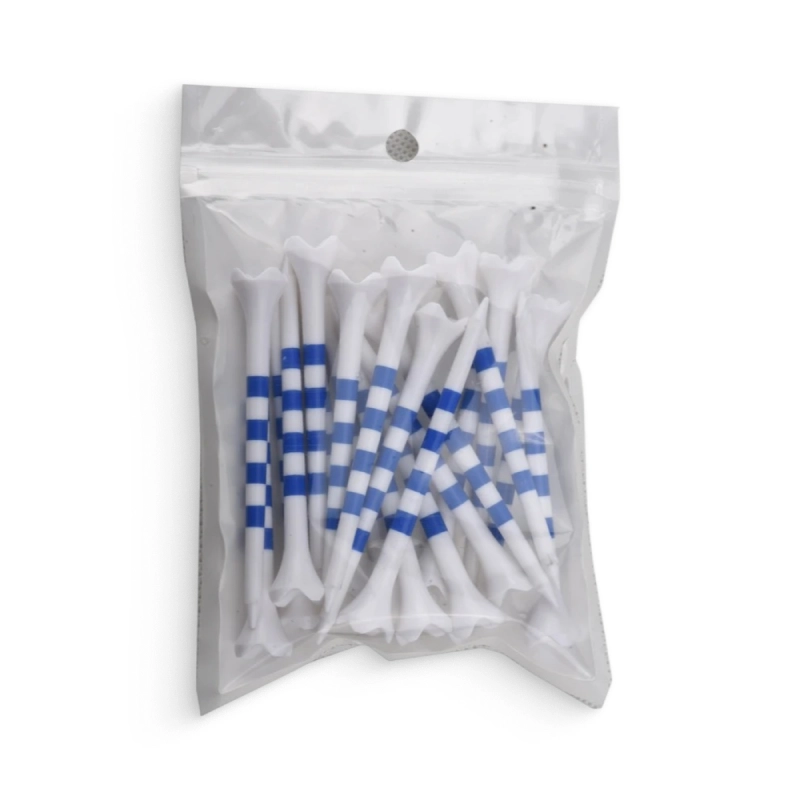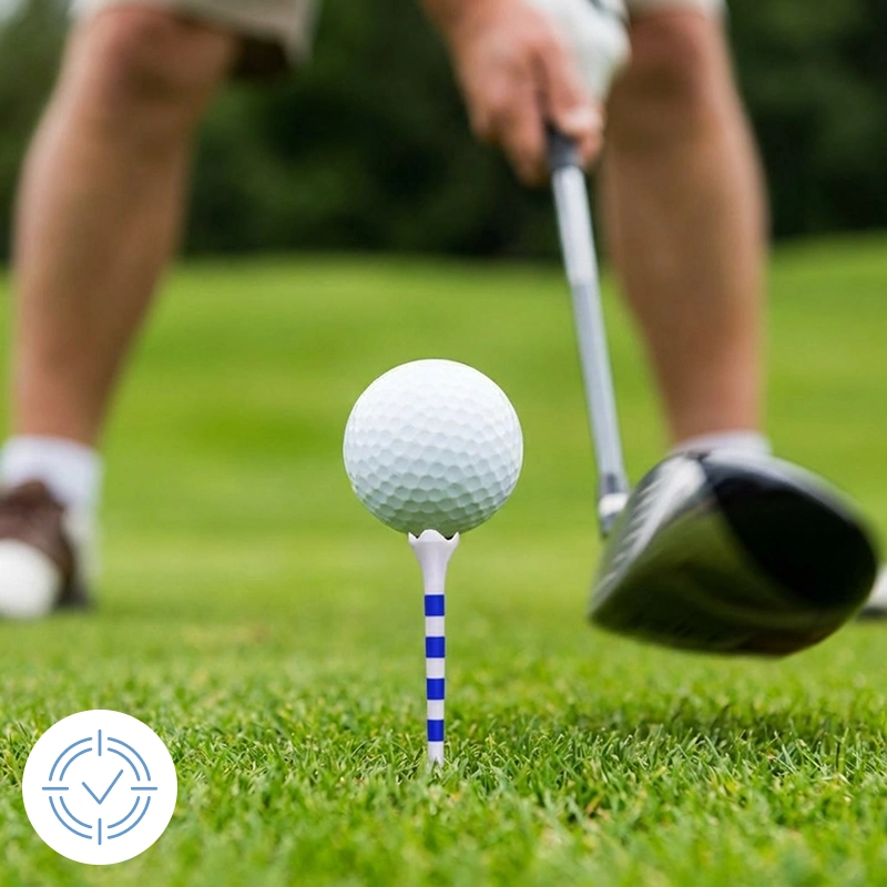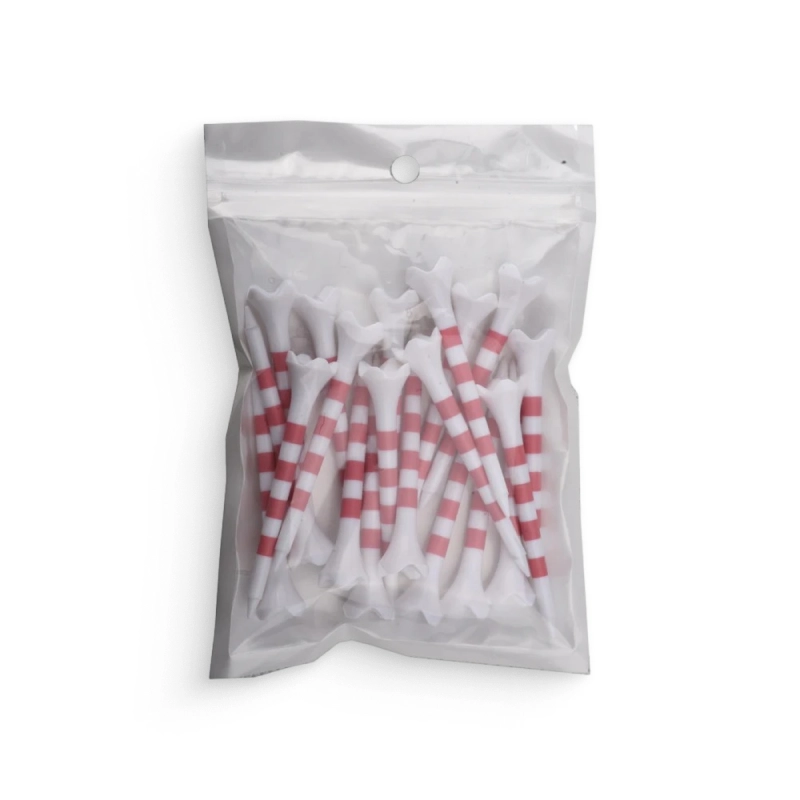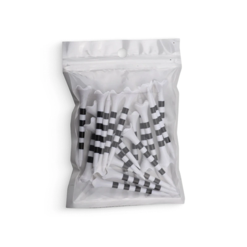 Folosesc același mic pumn de tee-uri de câteva săptămâni. Rezistă bine diminețile umede, intră ușor în solul tare, iar inelele colorate îmi fac așezarea mingii simplă și repetabilă.