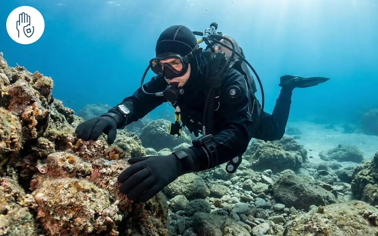 Mâinile rămân protejate de roci, corali sau viețuitoare marine. Neoprenul durabil previne tăieturile sau înțepăturile de fiecare dată.