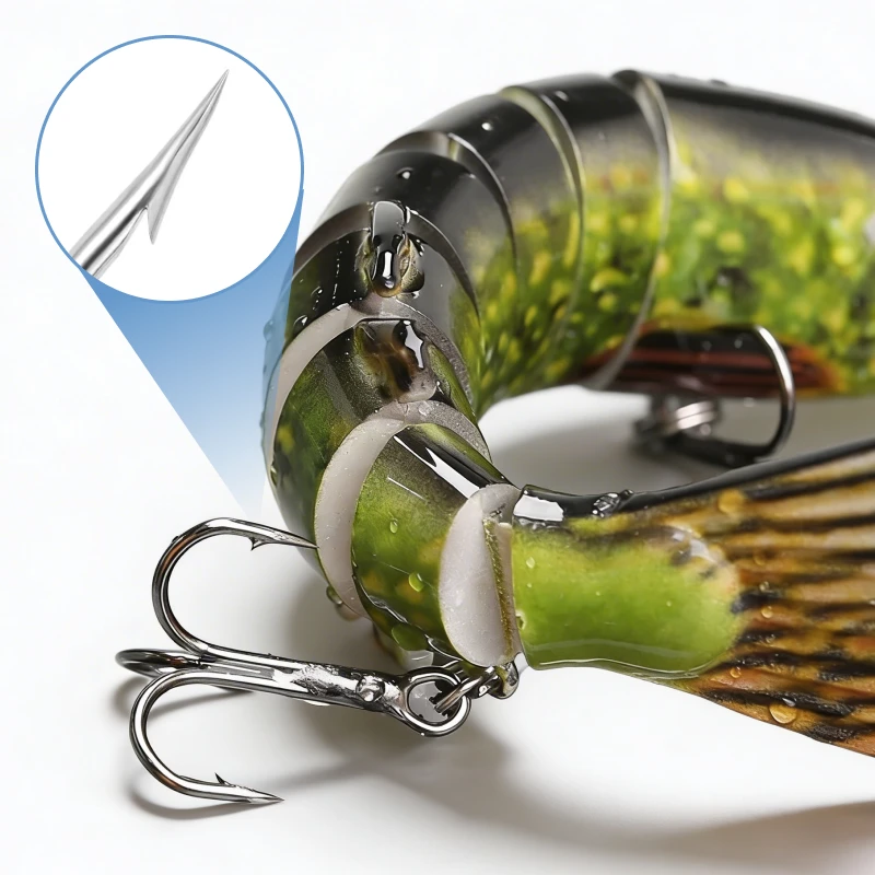 Opt secțiuni flexibile ajută această nălucă să înoate precum prada reală. Fiecare mișcare atrage prădătorii și îți crește șansele.