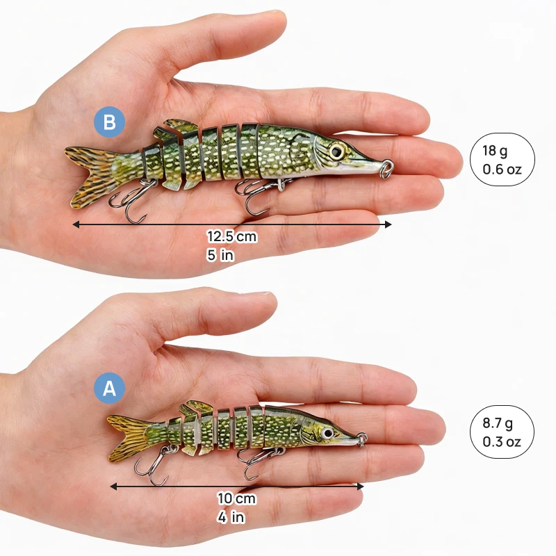 Prind mereu mai mulți bibani și știuci cu aceste năluci. Segmentele le fac să se miște foarte natural. Sunt grozave de avut în geanta mea de pescuit.