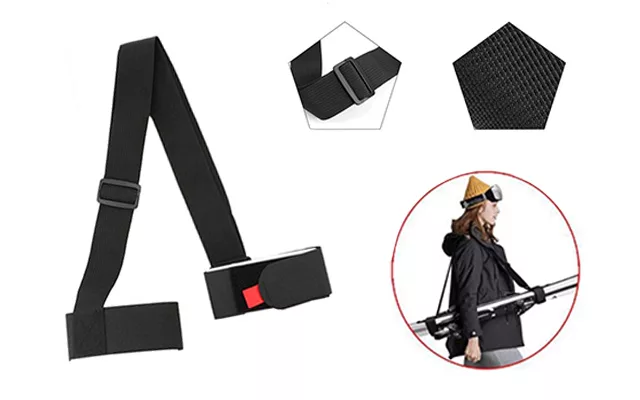 Funcționează excelent. Bucla Velcro de la fiecare capăt se potrivește ușor pe schiuri și bețe. Lungimea curelei este reglabilă.