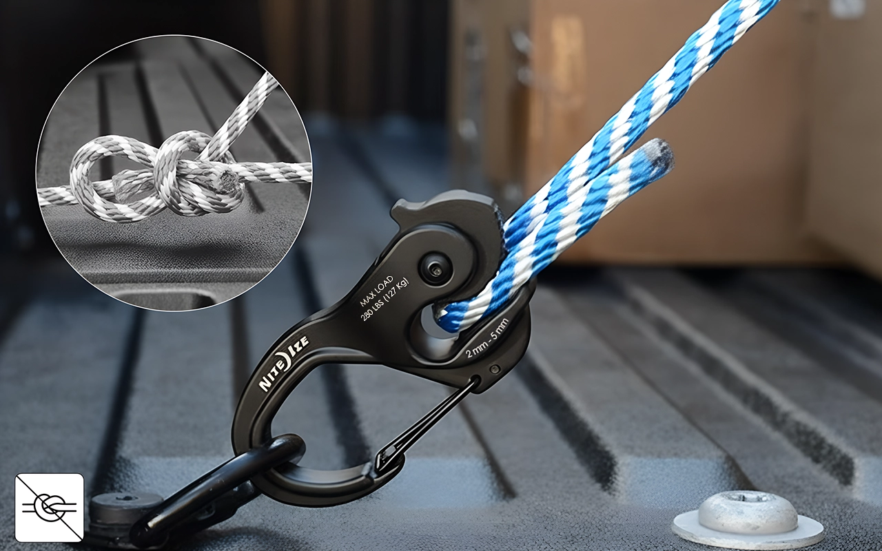 Strânge rapid frânghiile în doar câteva secunde folosind sistem inteligent cu camă. Uită de nodurile complicate sau de grija legăturilor slăbite afară.