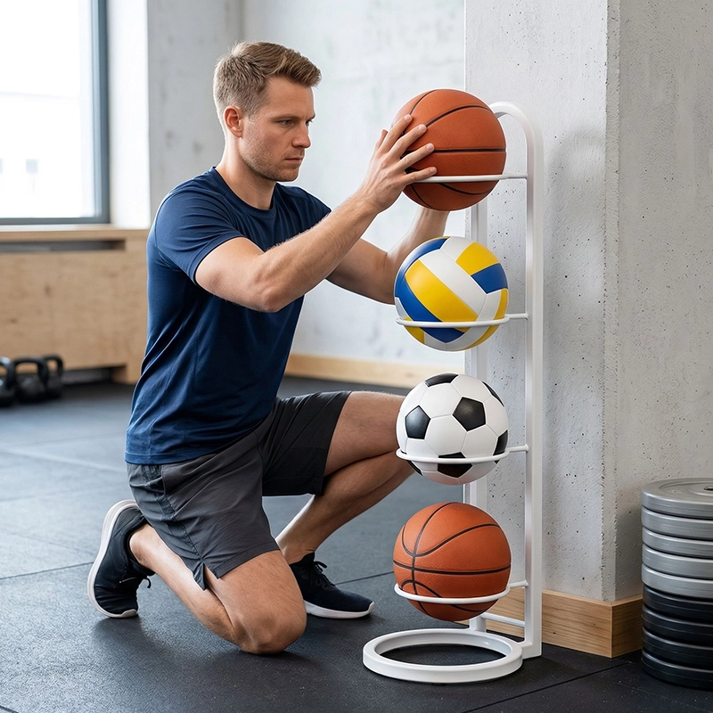Echipamentul sportiv împrăștiat dispare rapid cu ajutorul acestui suport ingenios. Construcția din oțel carbon rezistă utilizării de zi cu zi. Stilul său simplu se potrivește ușor în dormitoare, spații de locuit sau săli de sport. Nu sunt necesare șuruburi, așa că oricine îl poate monta rapid. Bucură-te de mai mult spațiu în timp ce păstrezi fiecare minge la îndemână.