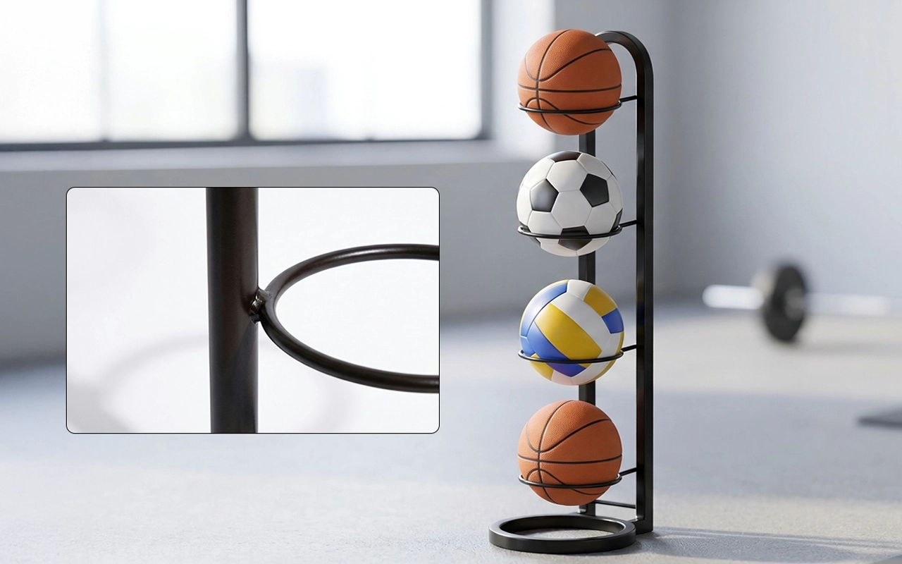 Ținem acest suport în camera de joacă de la subsol. Poate susține mai multe mingi grele de baschet fără să se clatine, iar designul deschis face ușor să iei repede una.