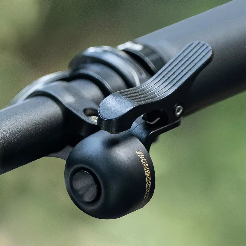 Clopoțelul de bicicletă Threo are un design elegant și nu ocupă mult spațiu. Lasă loc pentru lumini și alte accesorii.