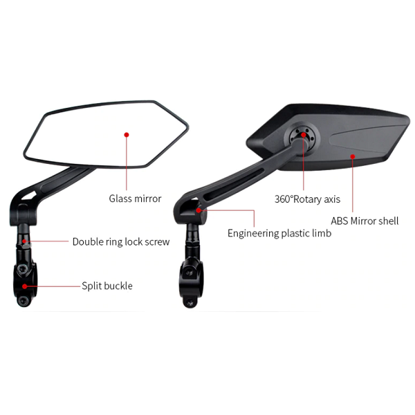 Oglinzile noastre retrovizoare pentru biciclete folosesc lentile din sticlă HD, o bază din aliaj de aluminiu de înaltă rezistență și un cadru durabil. Toate materialele sunt destul de rezistente și nu se sparg ușor, indiferent cât de repede preferi să pedalezi. În plus, suportul oglinzii retrovizoare pentru ghidon este complet rotativ și oferă o vizibilitate completă în spatele tău. Poate fi reglat în orice moment pentru a vedea ce vine din diferite direcții. Mai mult, brațele lungi ale oglinzilor oferă acoperire optimă pentru a îmbunătăți vederea periferică. De asemenea, designul flexibil al tijei nu va vibra nici măcar pe drumuri denivelate.