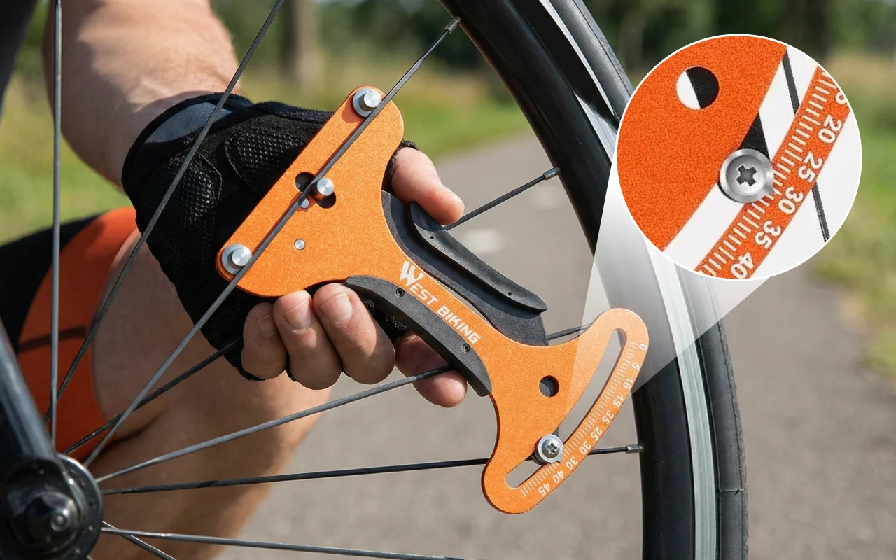 Roata mea dezechilibrată mă enerva până am încercat acest verificator de spițe. Rapid de folosit și îți arată ce trebuie reparat. Ajută foarte mult.