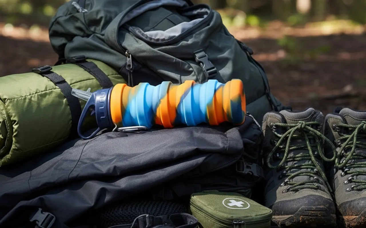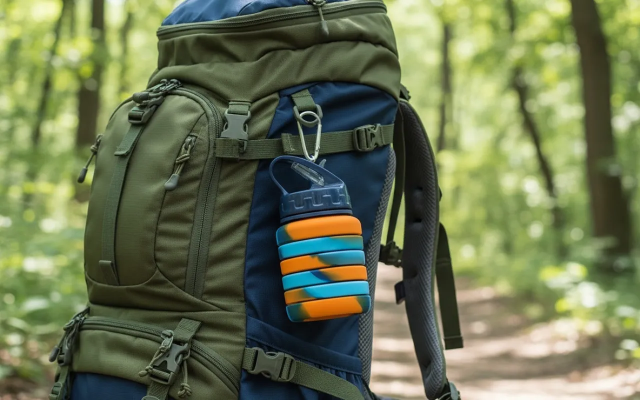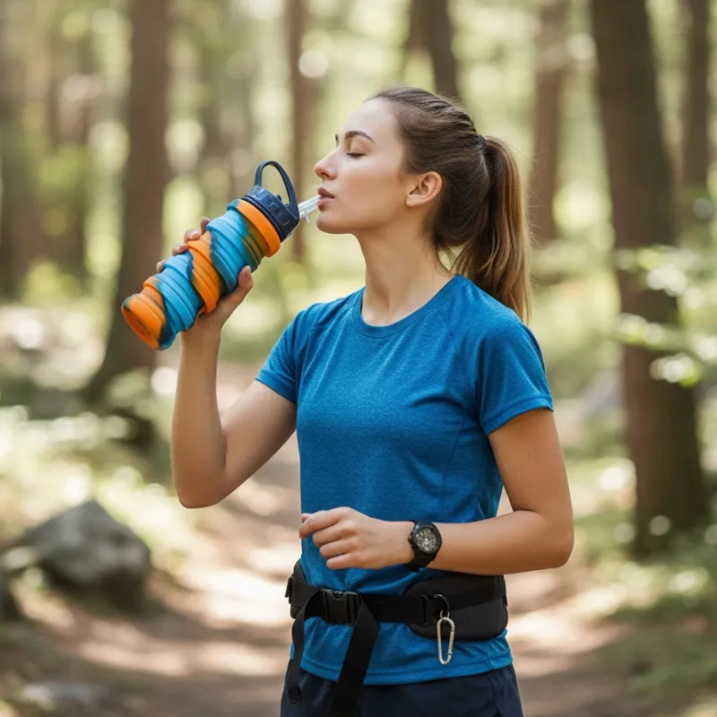 Se prinde sigur de rucsacuri sau curele pentru acces rapid. O înghițitură este mereu la îndemână.