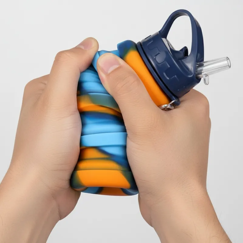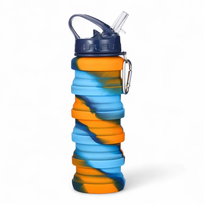 Sticla din silicon Threo este o soluție ingenioasă pentru cei care sunt mereu în mișcare. Designul său economisește spațiu în geantă sau valiză. Este o alternativă excelentă la sticlele voluminoase, de unică folosință.