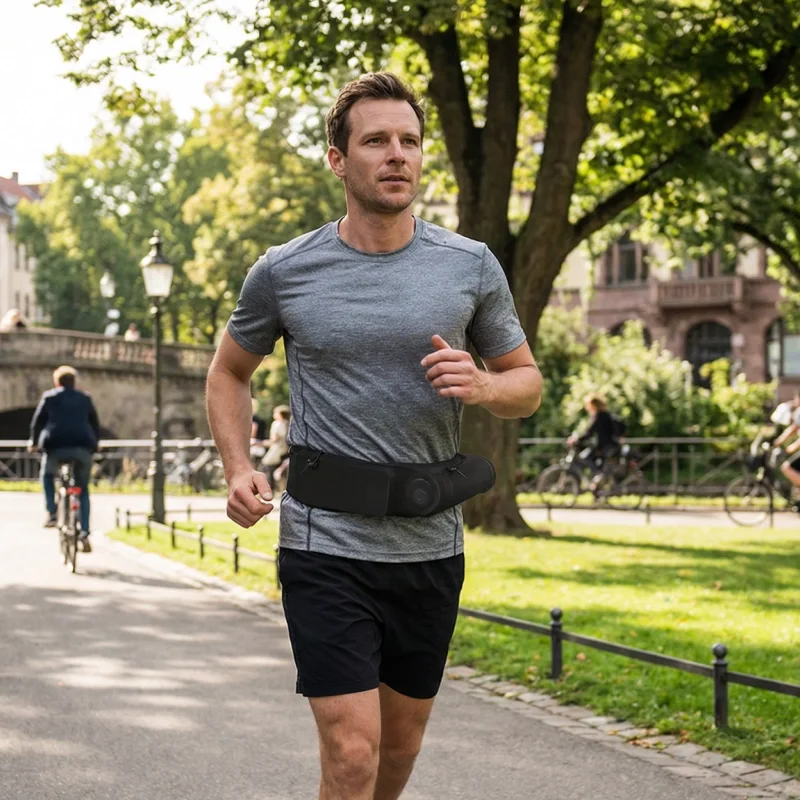 Păstrează-ți obiectele esențiale în siguranță în timp ce te miști zilnic. Centura de alergare Threo îți protejează telefonul, sticla de apă și cardurile. Bucură-te de confort respirabil fără genți voluminoase.
