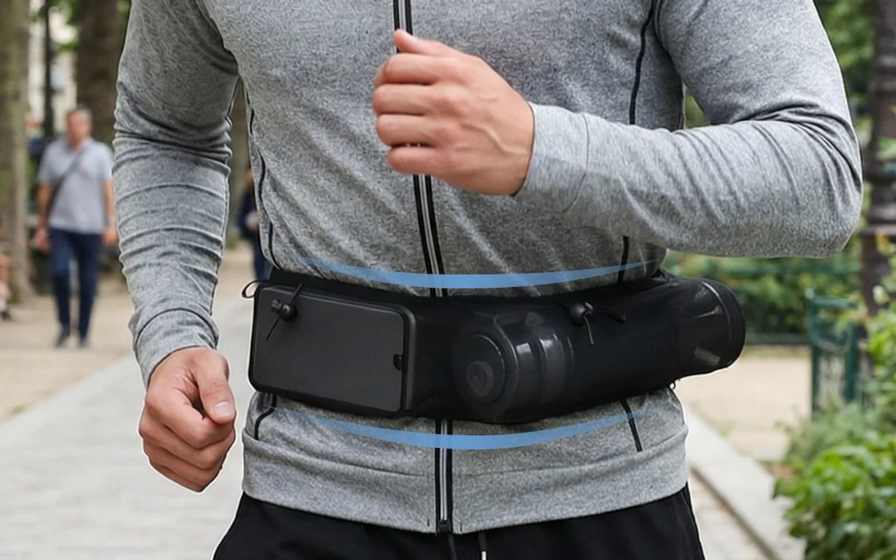 Păstrează-ți obiectele esențiale în siguranță în timp ce te miști zilnic. Centura de alergare Threo îți protejează telefonul, sticla de apă și cardurile. Bucură-te de confort respirabil fără genți voluminoase.