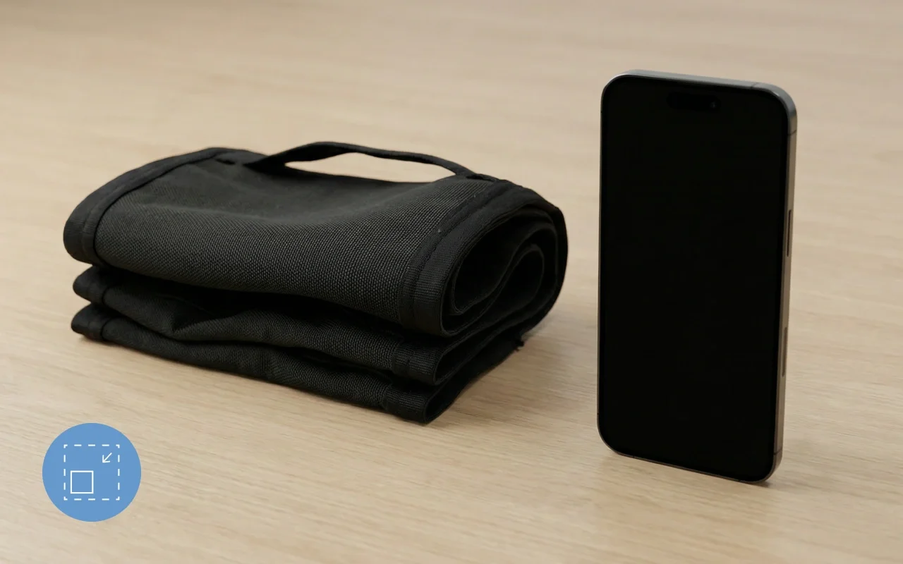 Cea mai bună parte este că se pliază foarte mică, așa că o arunc în geanta de sală. Destul spațiu pentru telefon și buletin, foarte comodă.