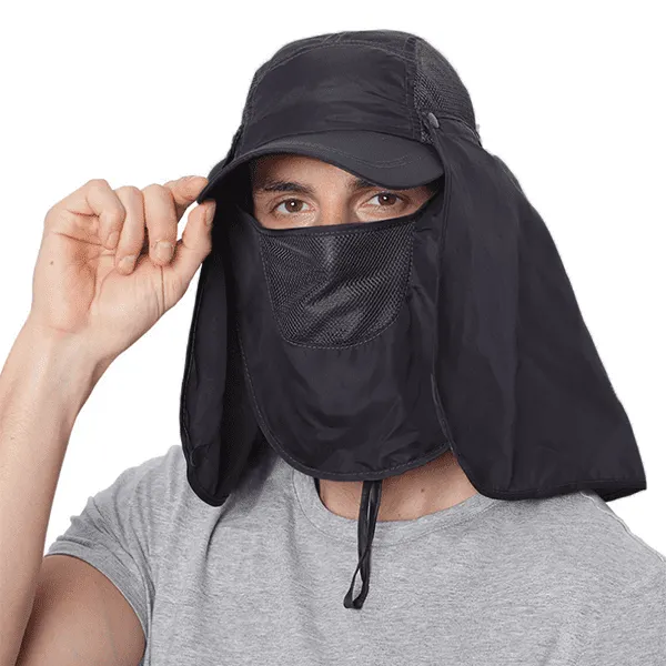 Designul cu vizieră Threo oferă acoperire maximă. Protejează-ți gâtul de razele dăunătoare, nu doar fața.