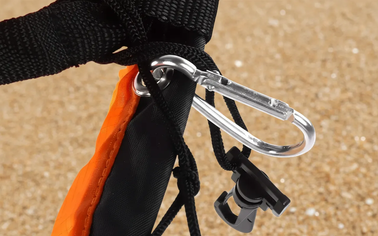 Deschide și atașează vela Threo pentru caiac în câteva secunde, folosind carabiniere rezistente. Niciun instrument sau instrucțiuni complicate nu te încetinesc pe mal.
