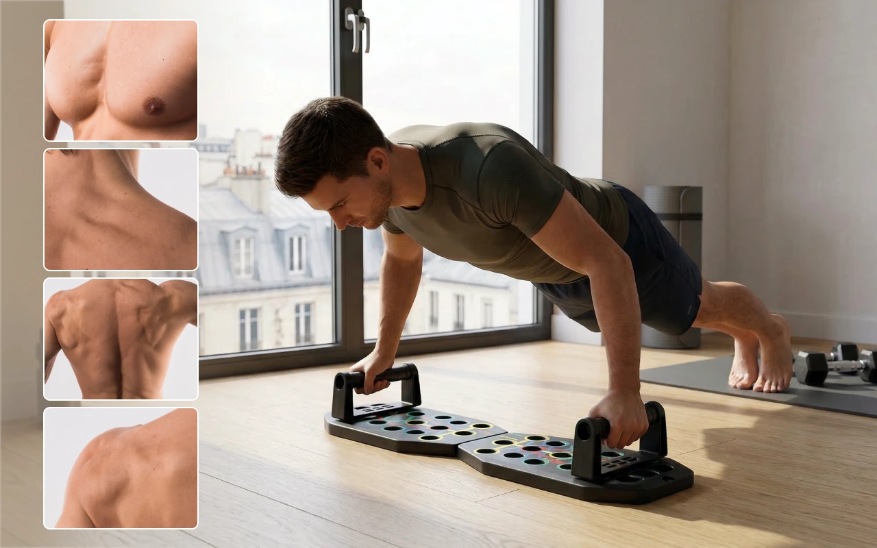 Voiam ceva simplu pentru antrenamente acasă. Această placă mi-a arătat unghiuri noi pentru flotări, iar partea superioară a spatelui nu mai este slabă sau înțepenită.
