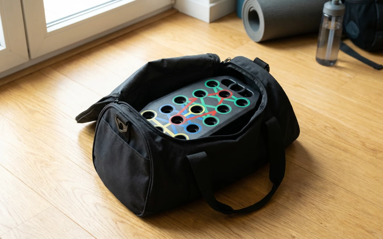 Tabla se pliază rapid, astfel încât încape în camere mici sau genți. Antrenează-te oriunde fără să-ți faci griji pentru spațiu sau echipamente grele.