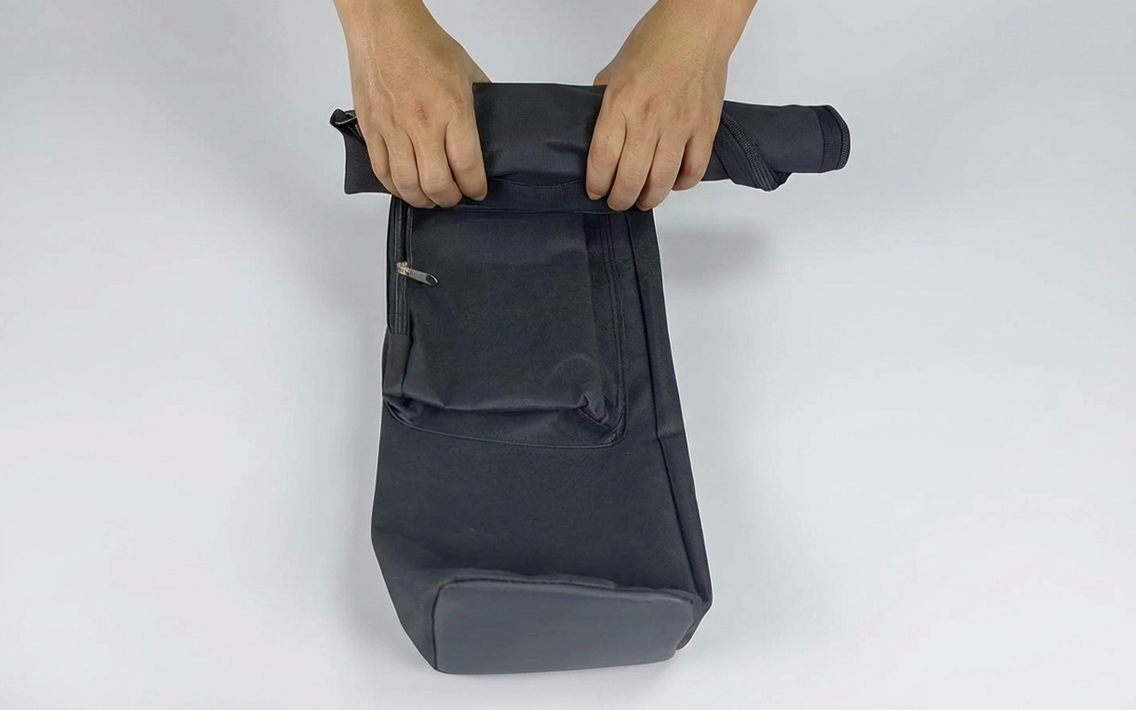 Geanta se pliază plat pentru o împachetare ușoară după fiecare sesiune. Economisește spațiu în mașini, dulapuri sau debarale fără efort.