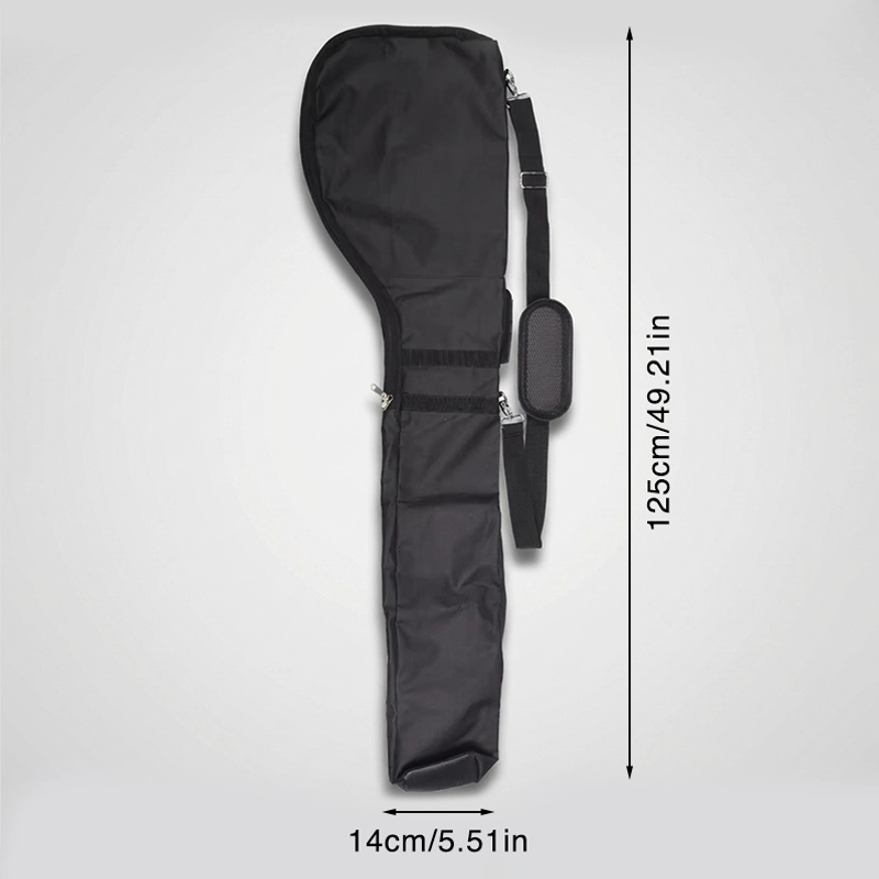 Îmi place acest mic sac de golf pentru mers. Stă bine pe umăr, pare suficient de rezistent pentru folosire regulată și se depozitează plat sub pat.