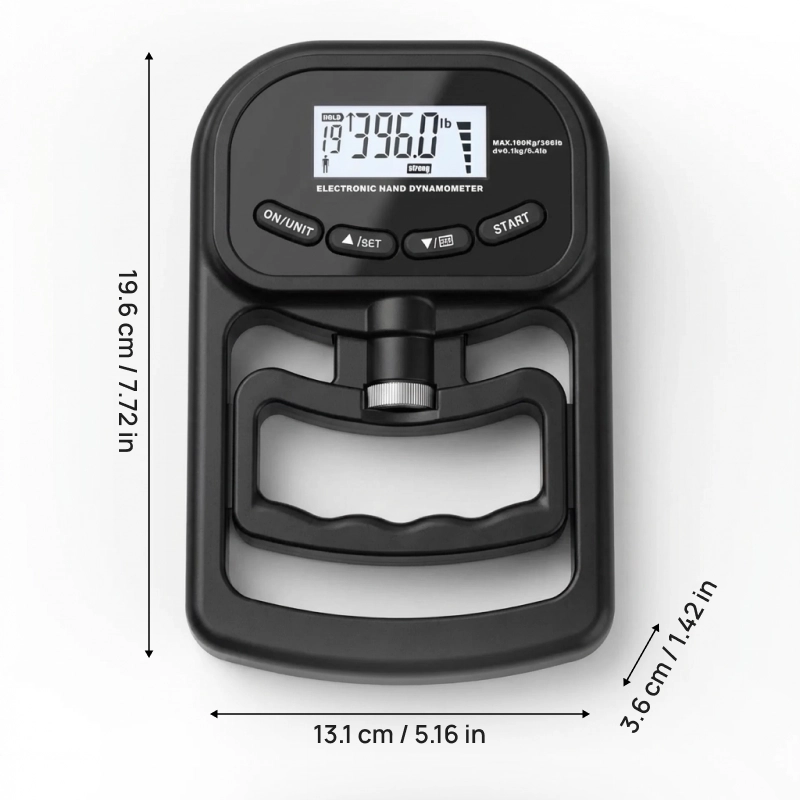 Am cumpărat acest tester de priză pentru recuperarea mea după operația la încheietura mâinii. Cifrele clare mă mențin motivată și chiar pot să îmi văd forța crescând în fiecare săptămână.