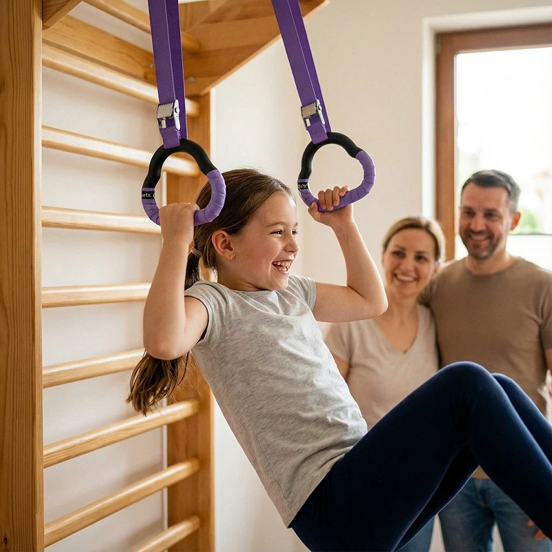 Fiica mea folosește inelele fără oprire înainte de cină! Exersează balansul și o ajută să fie mai concentrată la școală. S-au montat rapid în camera ei.