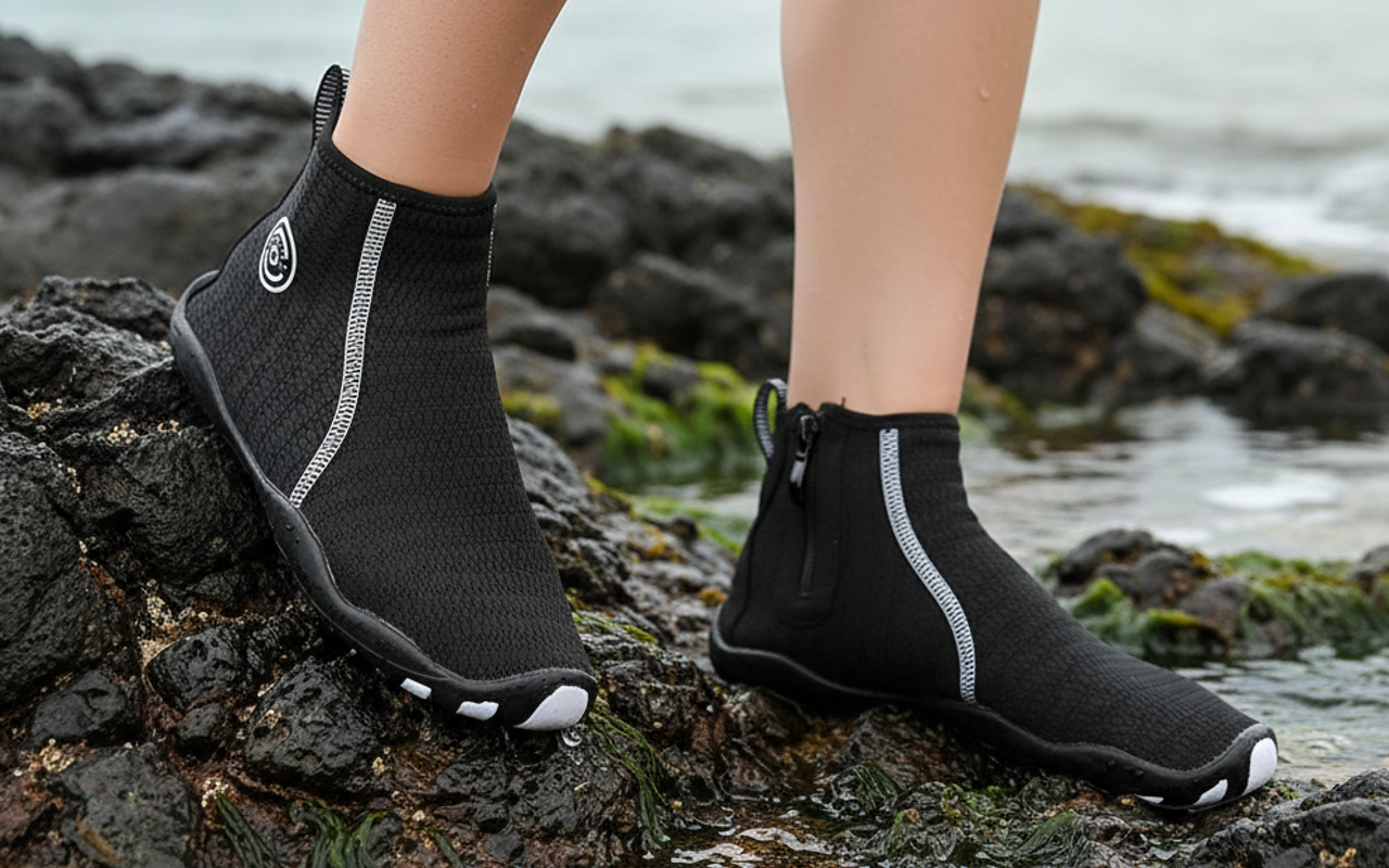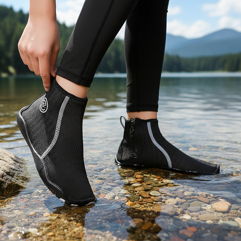 Talpa înaltă protejează gleznele de pietre ascuțite și nisip fierbinte. Tălpile durabile reduc alunecările, oferind echilibru stabil pe teren umed sau accidentat.