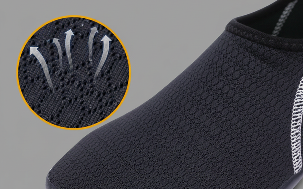 Plasa specială permite evacuarea rapidă a apei, prevenind încălțămintea grea. Bucură-te de pași uscați și proaspeți mult mai repede după fiecare stropire.