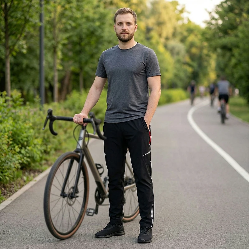 Merg zilnic cu bicicleta la serviciu, iar acești pantaloni sport fac totul mult mai ușor. Se întind bine, respiră foarte bine, iar buzunarele îmi țin cheile în siguranță.