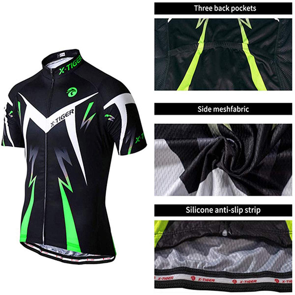 Tricoul de ciclism este elegant și foarte vizibil, cu elemente de design moderne. Dispune de un material de înaltă calitate, conceput pentru a oferi controlul umidității și protecție solară. Ajută la eliminarea transpirației de pe corp, unde se evaporă rapid. Pe spatele tricoului se află 3 buzunare cargo. De asemenea, acest tricou are un fermoar complet separabil pentru o îmbrăcare și dezbrăcare ușoară și ventilație în timpul plimbărilor lungi.