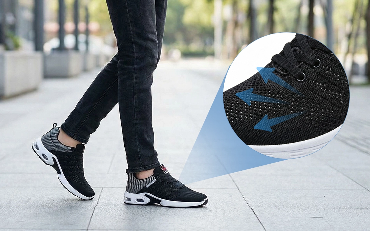 Partea superioară din plasă aerisită ajută la menținerea picioarelor răcoroase și uscate. Rămâi confortabil ore întregi, fără senzație de înfundare sau umezeală.