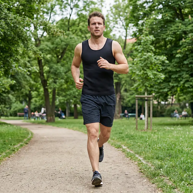 Am luat asta pentru plimbările de seară. Îmi îmbrățișează trunchiul fără să strângă, intensifică rapid transpirația, iar conturul abdomenului sub tricouri este mult mai curat.