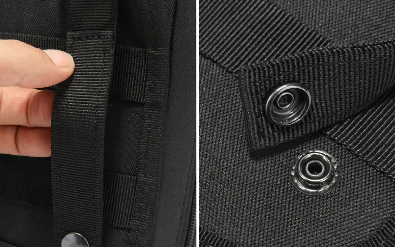Capsele din cupru și panourile detașabile fixează ușor punga. Atașeaz-o sau detașeaz-o rapid de rucsacuri sau curele pentru orice activitate.