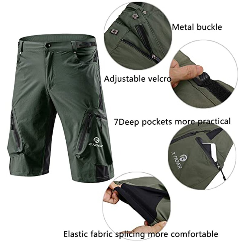 Cu un design cu multiple buzunare, acești pantaloni scurți căptușiți pentru bărbați pot depozita cu ușurință smartphone-ul, cheile, gustările și alte obiecte. De asemenea, pantalonii au un logo reflectorizant care asigură siguranța ta în timpul mersului pe bicicletă pe timp de noapte. Poți alege și modelul care vine împreună cu pantaloni scurți interiori cu pernuță căptușită cu gel. Aceasta oferă o protecție bună și ajută la prevenirea accidentărilor cauzate de mersul pe bicicletă.