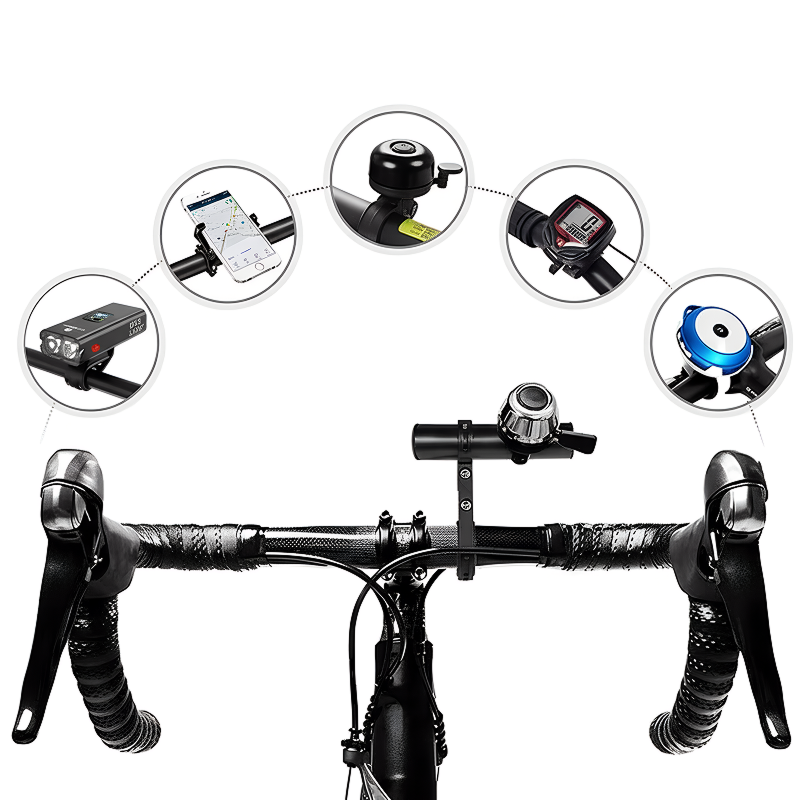Această bară a făcut o diferență mare pentru bicicleta de munte a fiului meu. Acum își ține claxonul și lanterna atașate și nimic nu se mai slăbește.