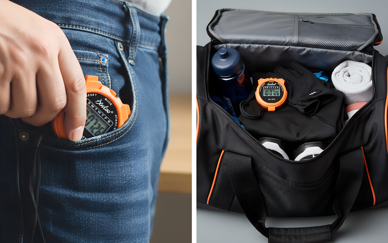 Ia Cronometrul Multifuncțional Threo oriunde în buzunar sau geantă. Construcția ușoară îl face ușor de avut la îndemână la evenimente sau antrenamente.
