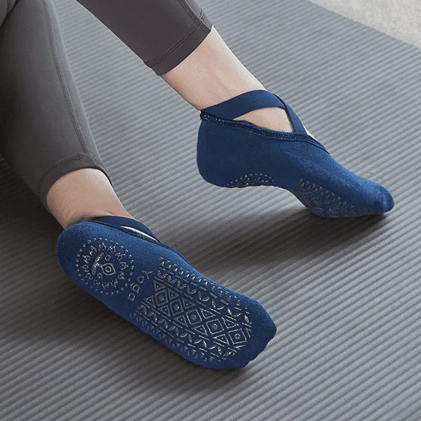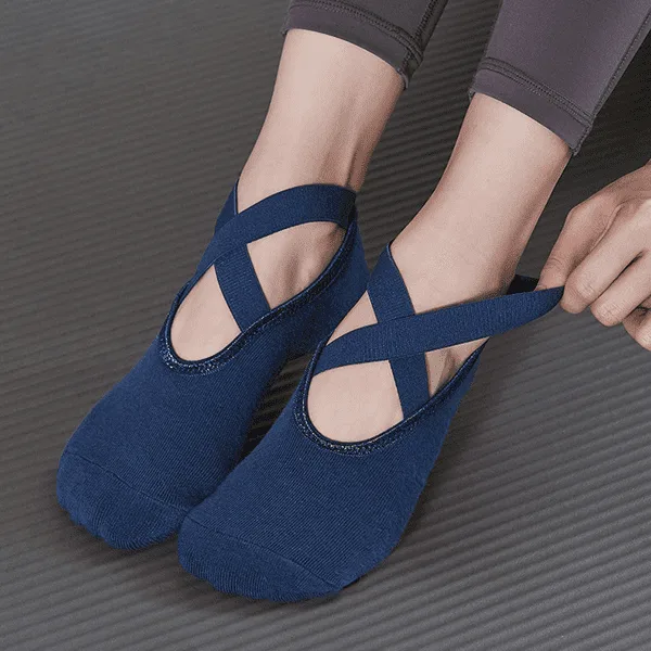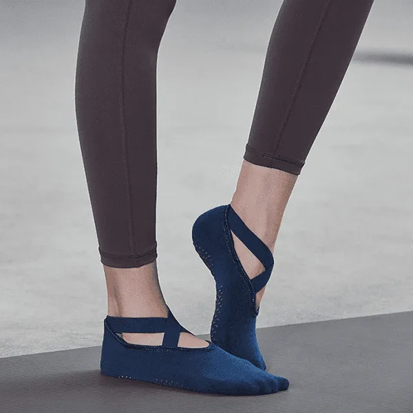 Șosetele Threo Yoga sunt șosete de antrenament concepute pentru femeile care practică yoga, pilates, barre, balet și dans. Curelele și gripurile antiderapante sporesc stabilitatea în timpul exercițiilor, iar mărimea unică se potrivește tuturor pasionaților de fitness. Bucurați-vă de igienă, confort, susținere și tracțiune desculți.