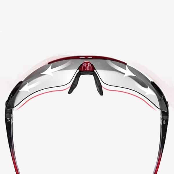 Ochelarii de ciclism fotocromatici THREO protejează perfect vederea ta de lumina soarelui. Lentilele își schimbă automat nivelul de întunecare și luminozitate în funcție de diferitele grade de radiații ultraviolete. În plus, ochelarii noștri oferă o adaptare perfectă la toate condițiile de lumină și vreme. Datorită acestei tehnologii, nu va mai fi nevoie să schimbi ochelarii în timpul diferitelor activități în aer liber. Mai mult, lentilele largi oferă un câmp vizual mai mare și îți protejează ochii de vânt, praf și țânțari.