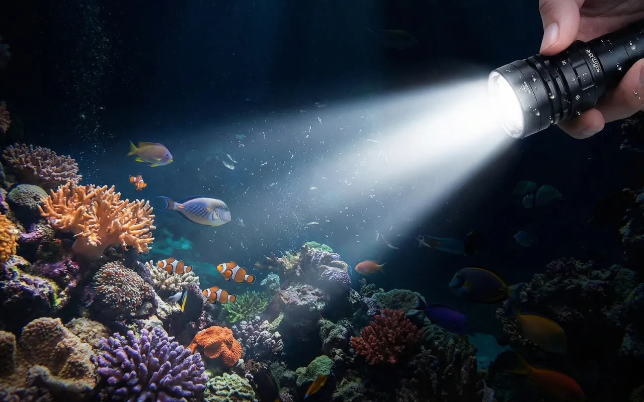 Strălucește cu intensitate 3000 de lumeni chiar și prin cea mai întunecată apă. Fiecare detaliu devine vizibil, transformând scufundările de noapte în aventuri sigure.
