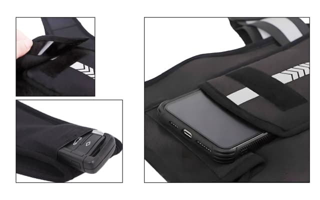 Oferind acces facil la lucruri în mișcare, buzunarul frontal cu compartimente separate poate găzdui un telefon de 8" și obiecte mici precum carduri, bani și chei. Închizătoarea robustă cu Velcro păstrează obiectele în siguranță. Un buzunar mic pe umăr oferă opțiuni suplimentare de depozitare pentru obiecte la care ai nevoie acces imediat.