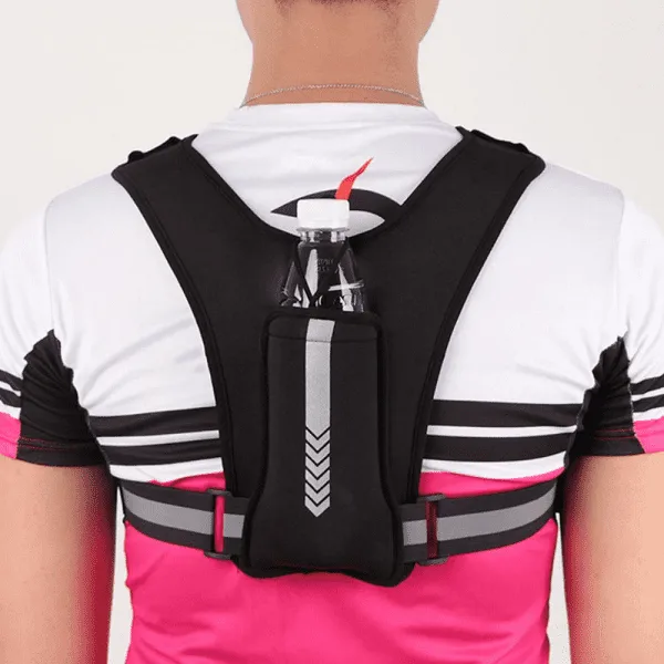 Buzunarul de pe spatele genții este proiectat pentru o sticlă de apă, permițându-ți să rămâi hidratat în timpul alergărilor lungi. Curea de strângere asigură sticla în poziție și previne căderea acesteia chiar și în timpul antrenamentelor intense.
