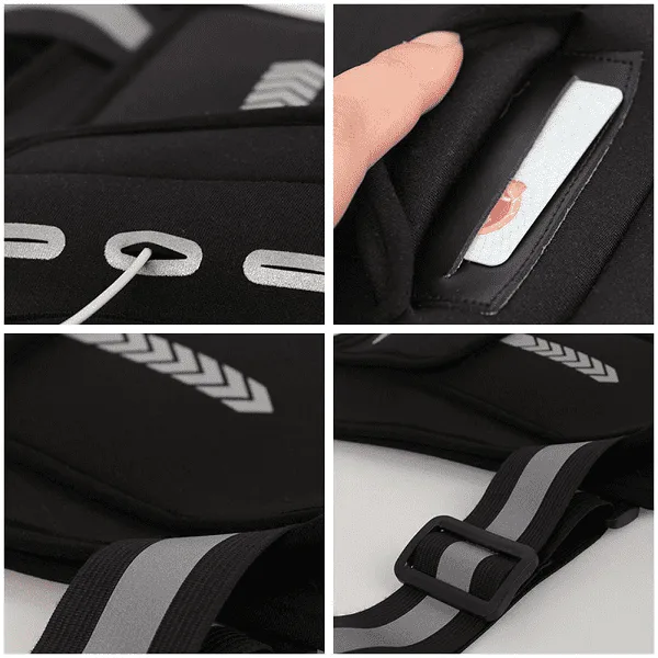 Benzile reflectorizante de pe geanta noastră pentru piept îți permit să rămâi vizibil în condiții de lumină scăzută, astfel încât să alergi în siguranță dimineața devreme sau seara târziu.