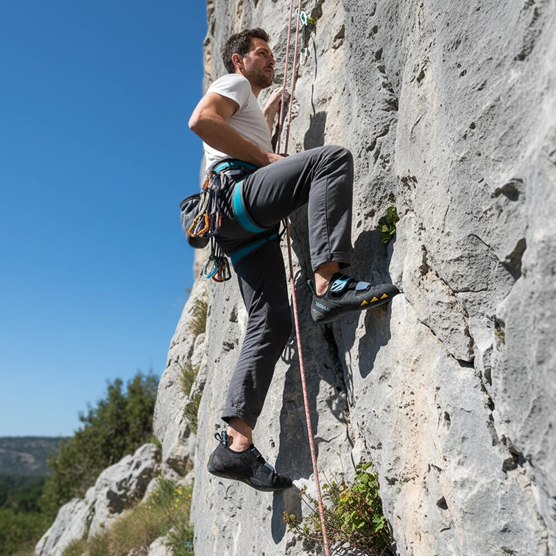 Curelele reglabile mențin picioarele fixate și stabile în timpul cățărării. Bucură-te de o susținere fiabilă pe fiecare traseu, în interior sau exterior.