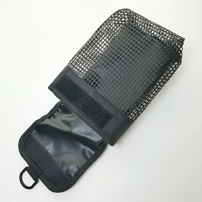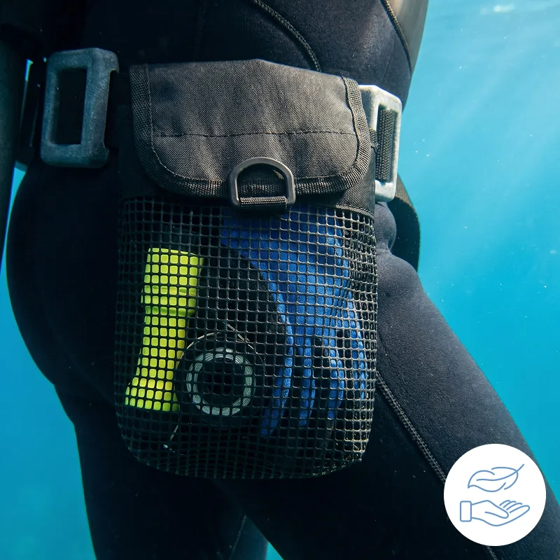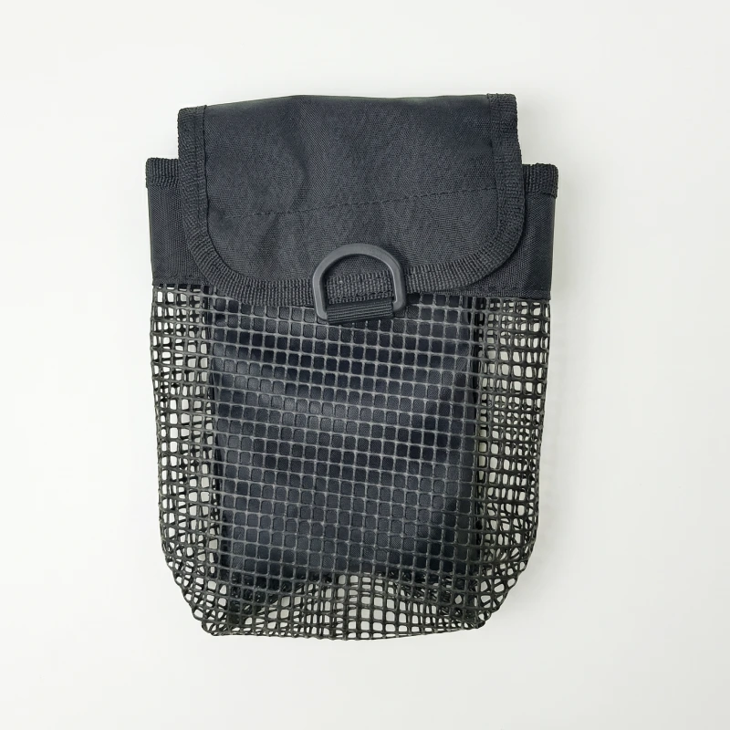Îl folosesc la centură în timpul acțiunilor de curățare subacvatică. Țin în el coliere de plastic, unelte mici și markere. Părțile din plasă lasă nisipul și apa să iasă ușor, păstrând lucrurile curate.