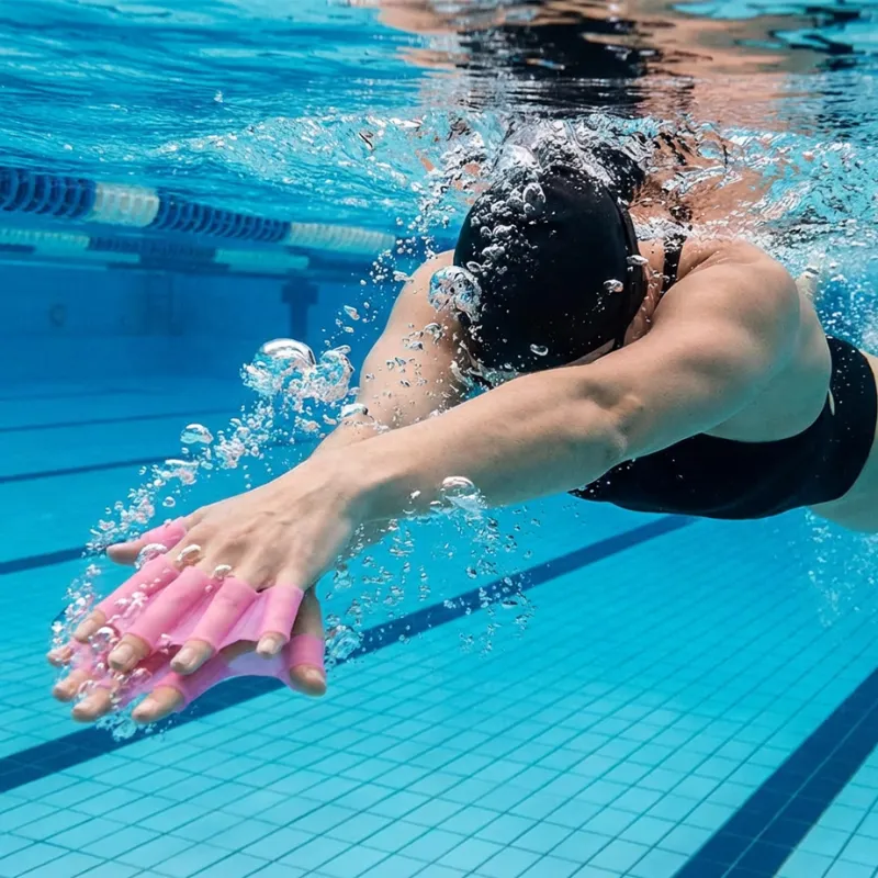 Chiar și într-o piscină mică de hotel reușesc să fac un antrenament serios cu ele. Siliconul moale se mulează pe mâini, iar fiecare braț mă poartă mai departe decât de obicei.