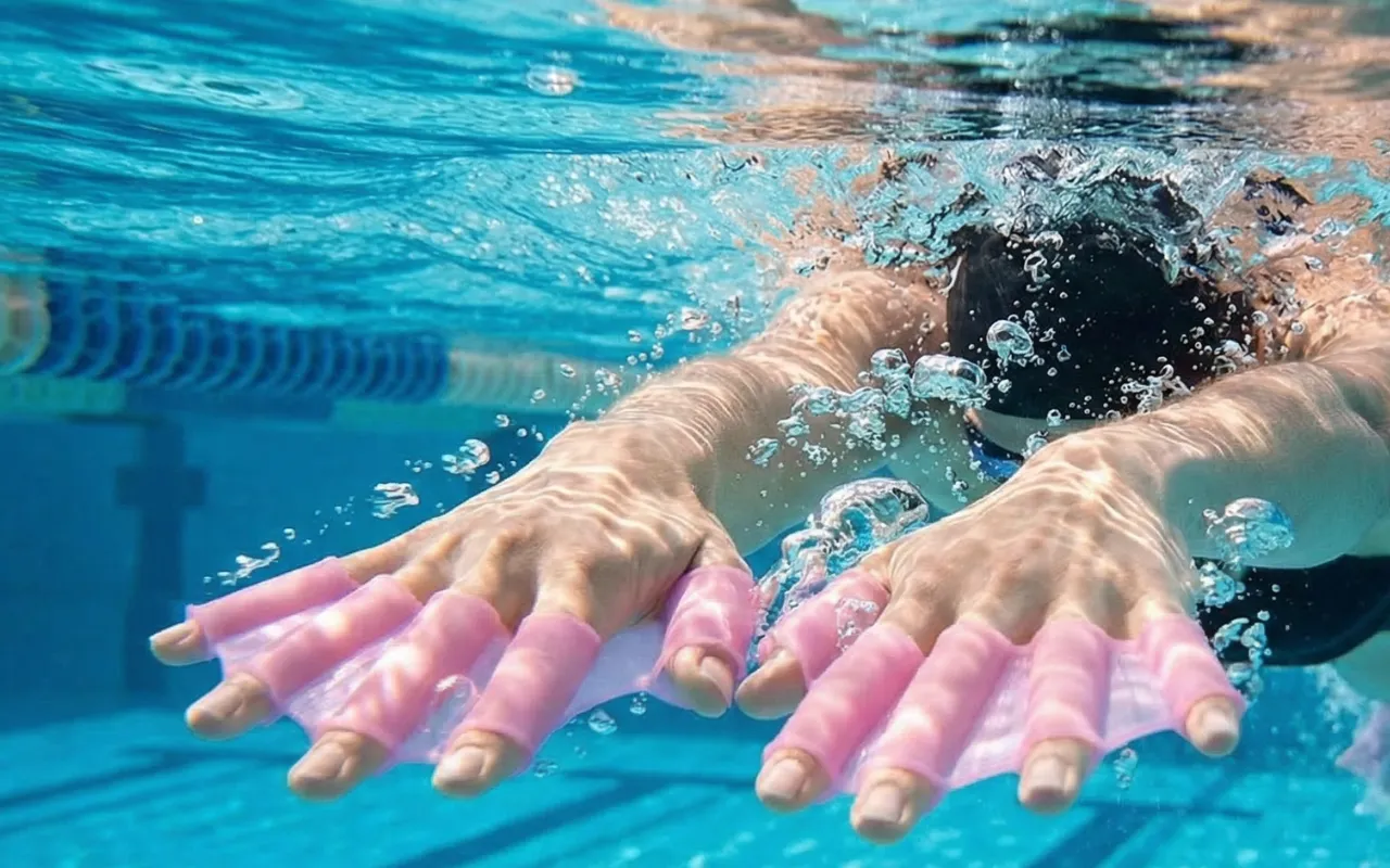 Chiar și într-o piscină mică de hotel reușesc să fac un antrenament serios cu ele. Siliconul moale se mulează pe mâini, iar fiecare braț mă poartă mai departe decât de obicei.