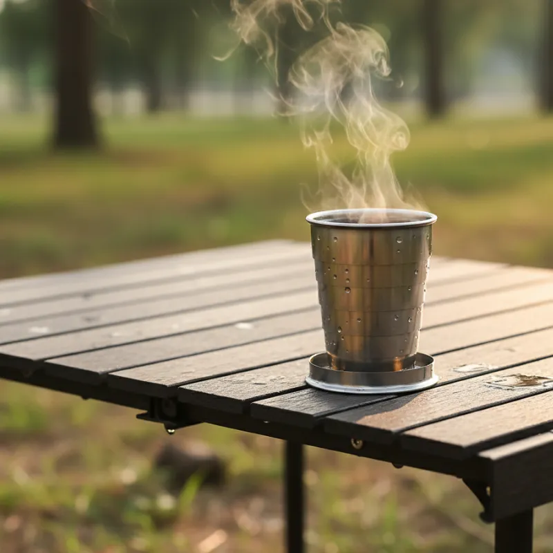 Perfectă pentru aventuri la camping. Ciocolata caldă are gust mai bun afară, iar cana e ușor de clătit.