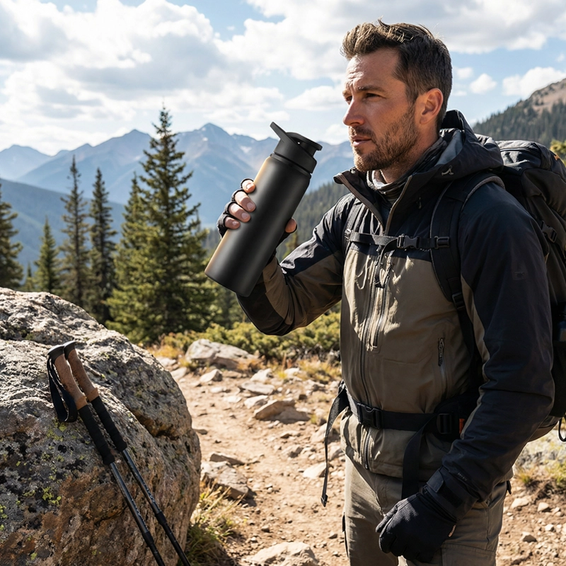 Oțelul inoxidabil durabil menține sticla ca nouă pentru mai mult timp. Nu trebuie să-ți faci griji pentru lovituri sau rugină din aventurile zilnice.