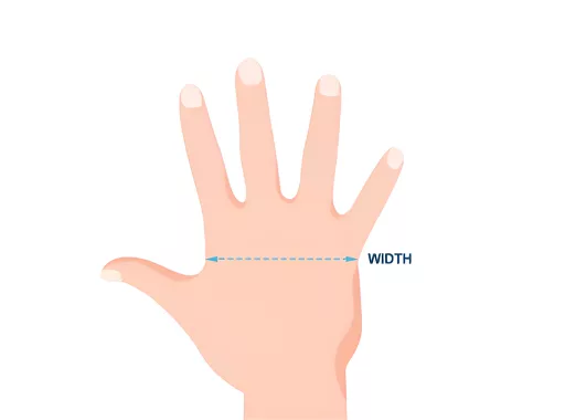 - 1. Întinde banda de măsurare peste cea mai lată parte a palmei.