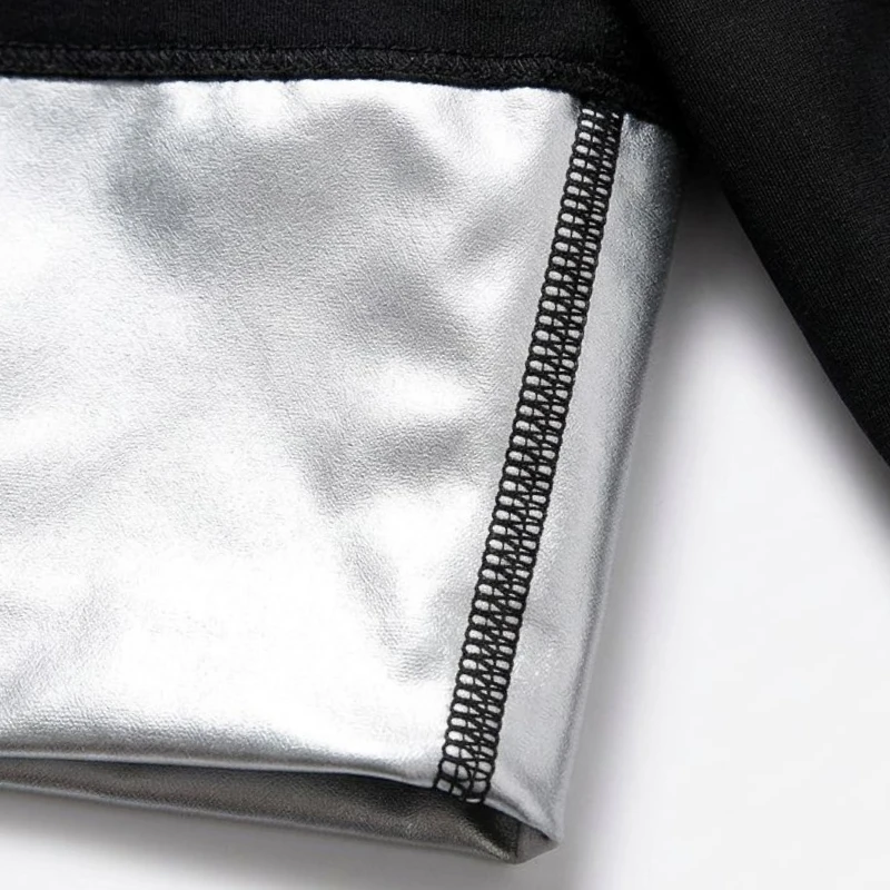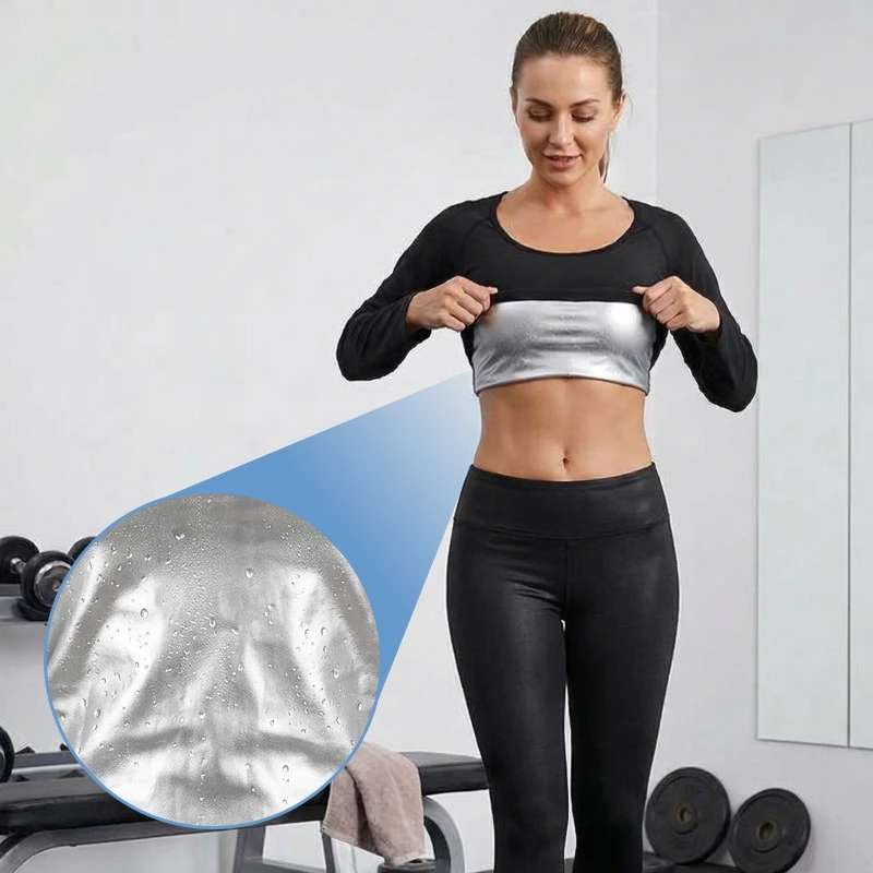 Acest tricou tip saună mă ajută să transpir foarte repede și îmi place cum îmi menține burta netedă sub hanoracul de la sală.