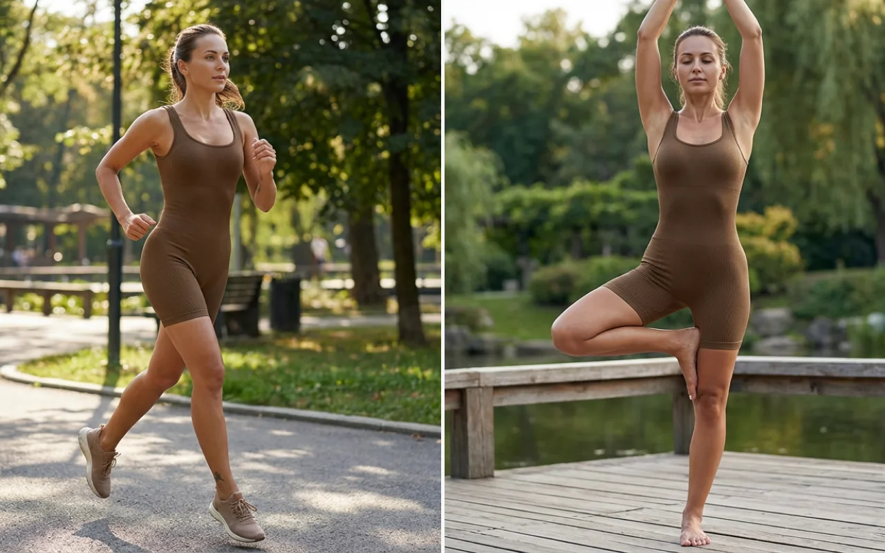 Port mărimi plus size și eram ezitantă să încerc un costum întreg. Acest combinezon m-a surprins: super elastic, avantajează silueta și rămâne confortabil la genuflexiuni, fandări și sesiuni lungi de stretching.